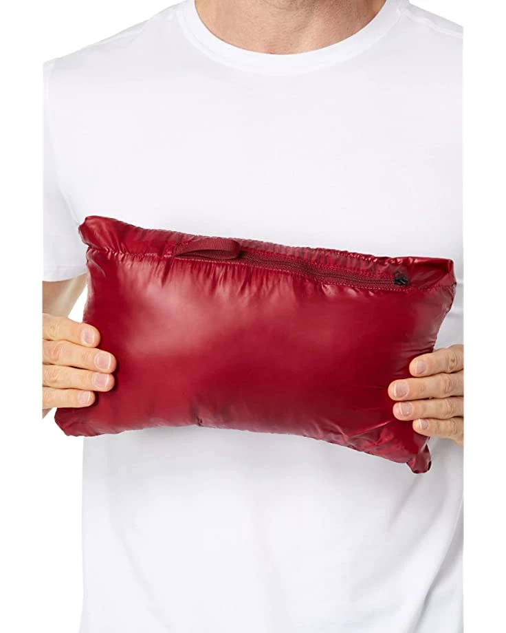 - Stows into its own hand pocket.